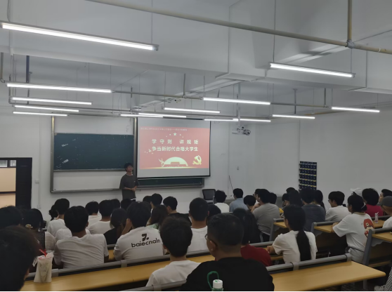 班会以“青春引航,守则同行”为主题拉开帷幕。主持人学生会主席张维新同学强调了学习学生守则对个人成长和校园文明建设的重要意义。在知识讲解环节,围绕“爱国守法、明礼诚信”等守则核心内容,结合校园真实案例,深入浅出地阐释守则内涵。针对计算机专业学生的特点,着重讲解网络文明规范,引导学生自觉抵制不良信息,引发热烈反响。