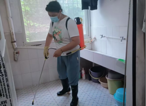 消杀过程中,9428cn太阳集团古天乐与学校后勤部门合作,对卫生间、阳台、门窗角落、下水道口等容易滋生蚊虫的潮湿区域进行了专业的药物喷洒。同时,辅导员们耐心指导学生清理积水,如花盆底盘、饮水机接水盘、闲置容器等,从源头上彻底铲除蚊虫孳生的环境,最大限度降低伊蚊的密度和疾病传播风险。