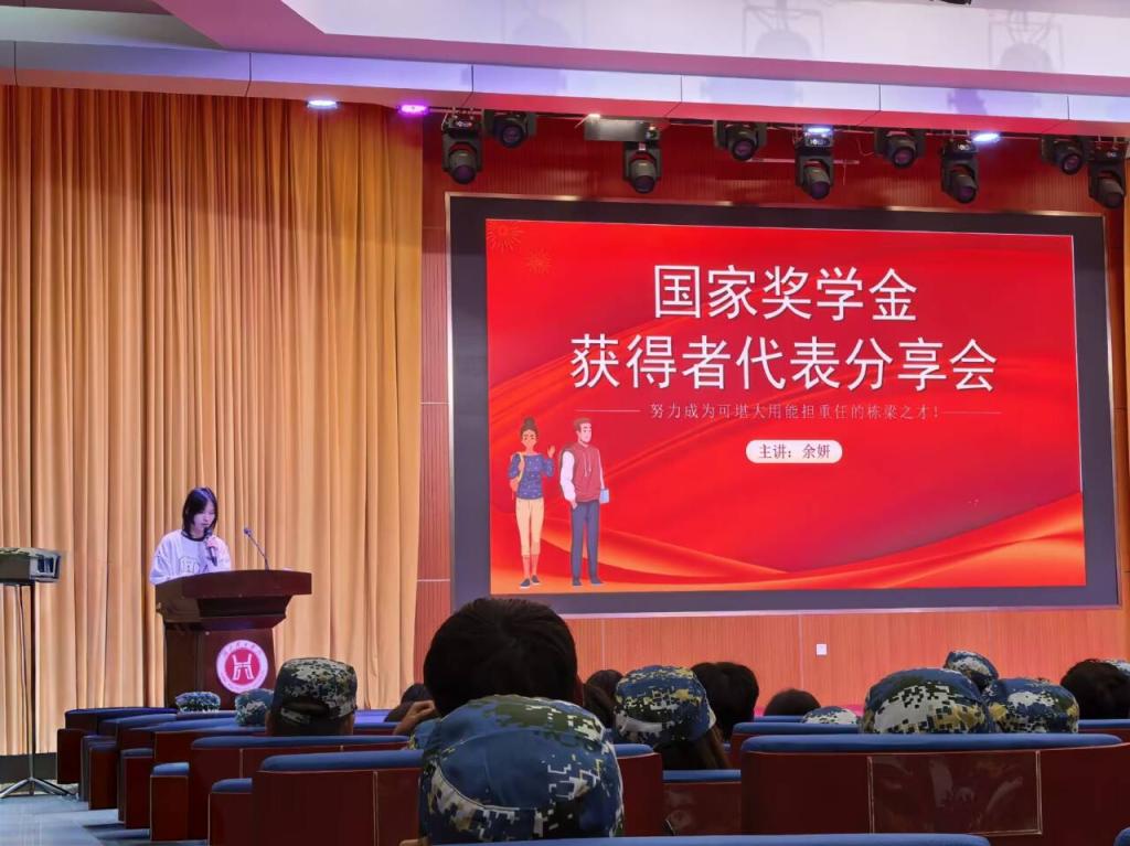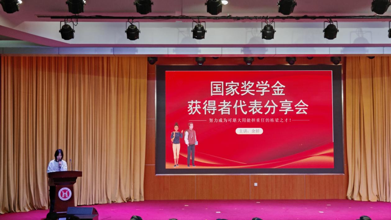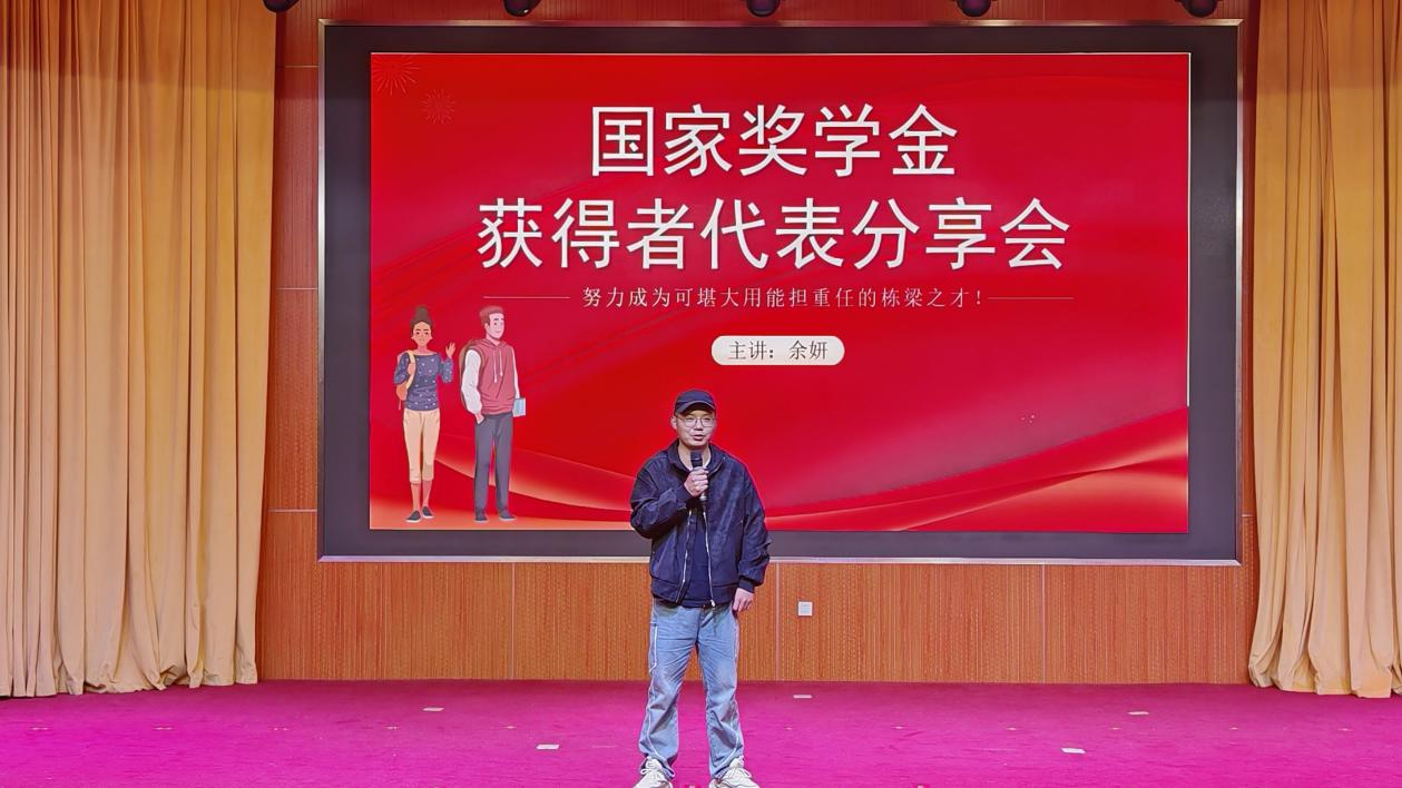 本网消息 为表彰先进学生典型,充分发挥其示范引领作用,以激励9428cn太阳集团古天乐学子奋发向上,2025年11月7日晚,9428cn太阳集团古天乐于豁度楼208会场开展国家奖学金获得者代表分享会,会上国家奖学金获得者代表余妍分享自身经验。