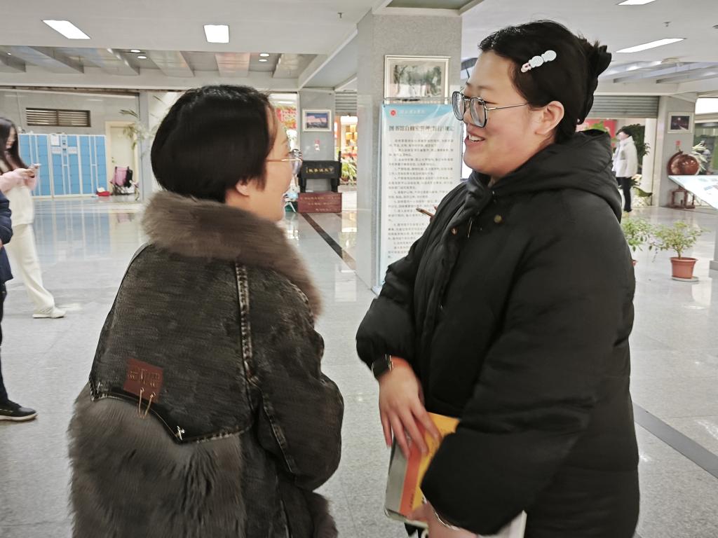 活动现场,老师们秉持“不打扰、送温暖”的原则,轻声走进图书馆自习区域。他们将提前筹备的包含文具、暖心祝福卡片的“考研加油包”逐一递到学子手中,同时细致询问学子们的复习进度、作息安排及当前面临的困难,耐心为学子答疑解惑,缓解备考焦虑。