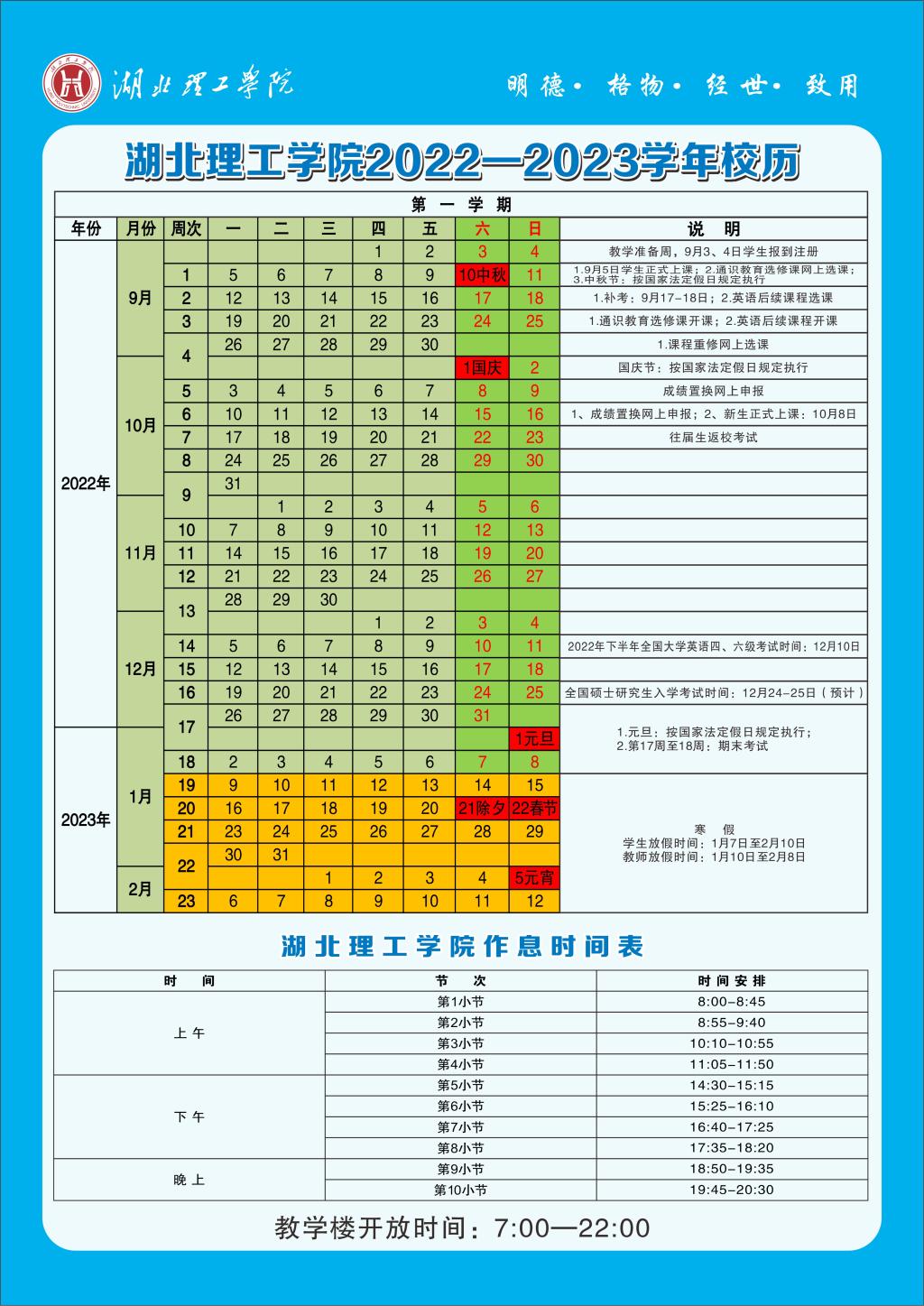 2022-2023学年-1学期校历